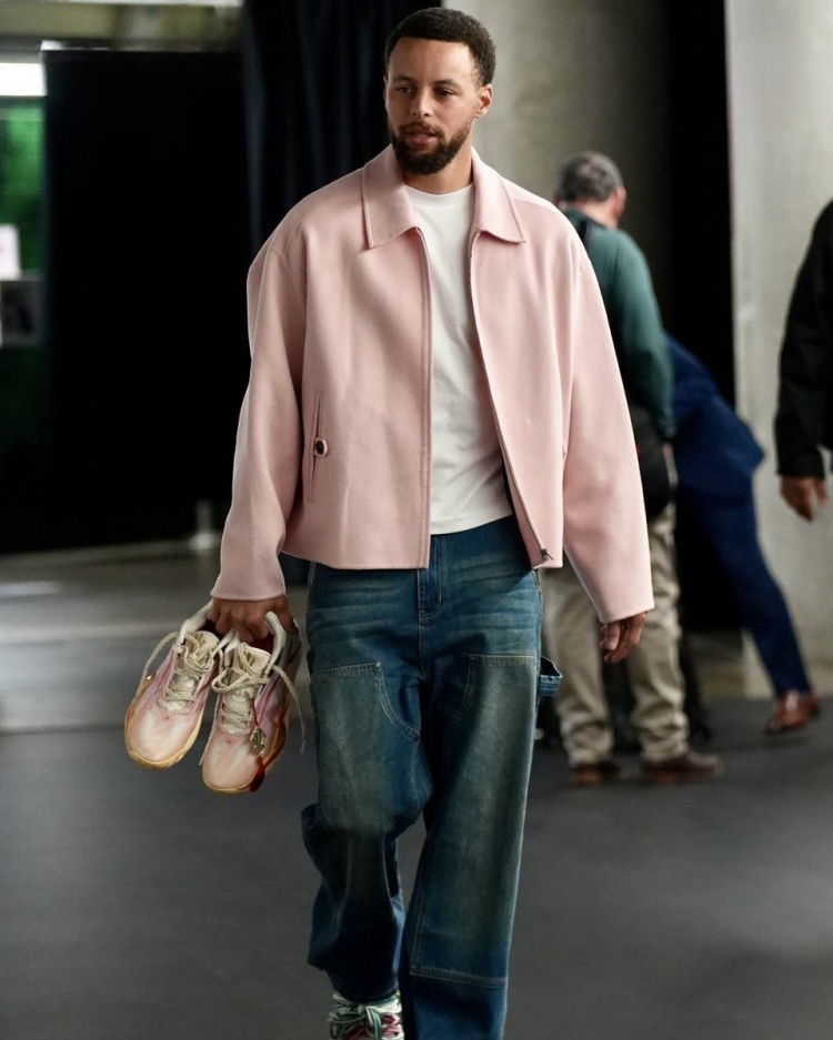 勇士球星库里今日赛前手持安踏欧文3代“中国新年”配色球鞋入场,并在训练中上脚。